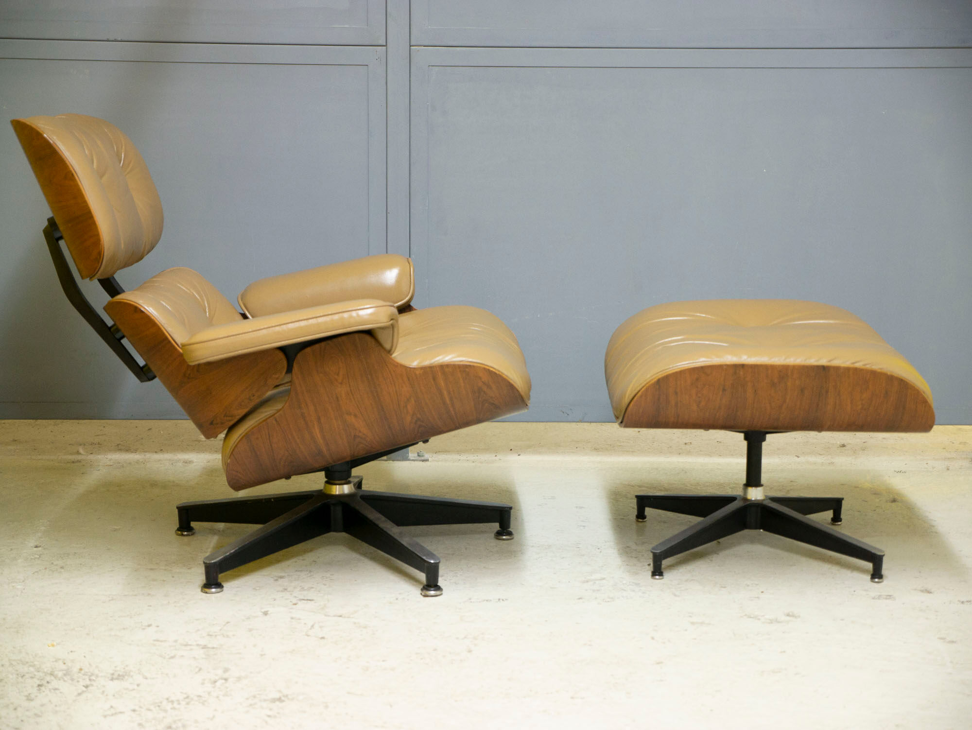 Fauteuil Lounge Chair Et Ottoman Fauve De Charles Ray Eames Herman Miller Selency