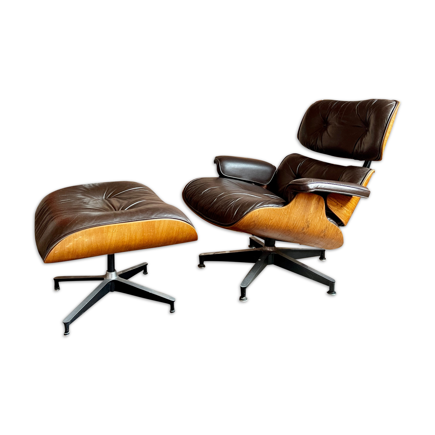 Fauteuil Lounge Chair Et Ottoman Cuir Chocolat De Charles Ray Eames Edite Herman Miller Selency