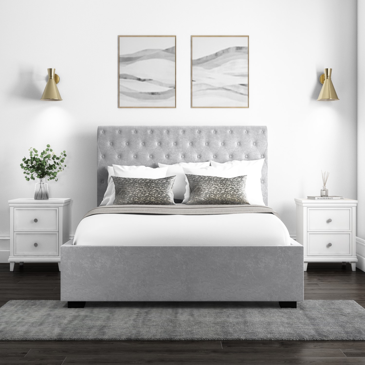 Margot King Size Ottoman Bed With Curved Headboard In Silver Grey Velvet Furniture123